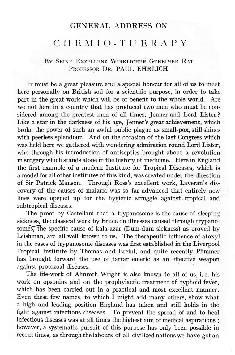 M0013458: First page of Paul Ehrlich's address to the XVII International Congress of Medicine. In copyright. Source: Wellcome Collection.