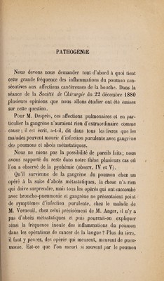 Credit: Complications pulmonaires de l'épithélioma buccal ... / par François-Marie-Stéphane Guillot. Source: Wellcome Collection.