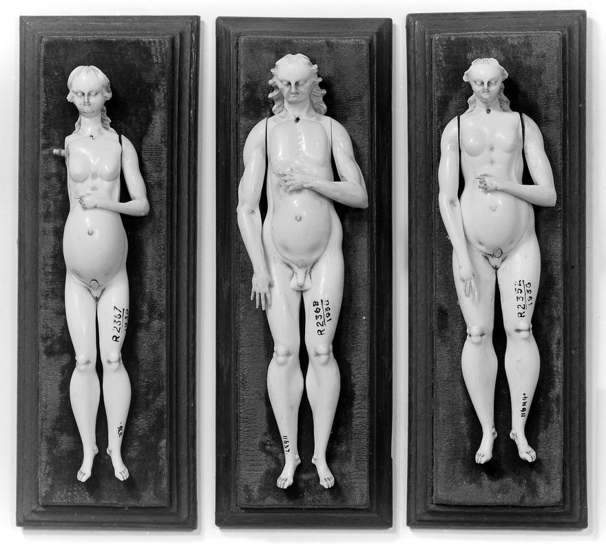 Credit: M0018645EA: Anatomical figures in ivory; two female and one male, 17th century. Source: Wellcome Collection.