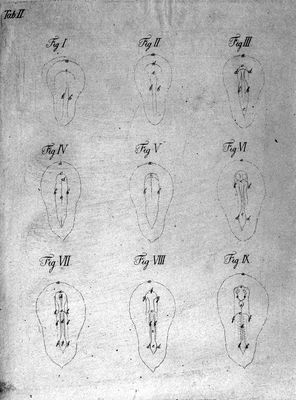 Credit: M0020117EB: Pander: <i>Entwickelungsgeschichte des Huhnchens</i>, 1817: plate II. Source: Wellcome Collection.