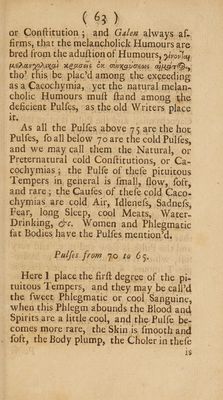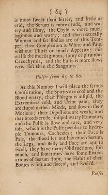 Credit: The physician's pulse-watch; or, an essay to explain the old art of feeling the pulse, and to improve it by the help of a pulse-watch ... To which is added, an extract out of Andrew Cleyer, concerning the Chinese art of feeling the pulse. (An appendic. I. An essay to make a new sphygmologia ... II. An inquiry into the nature ... of the respirations ... III. A letter concerning the rupture in the lungs) / [Sir John Floyer]. Source: Wellcome Collection.