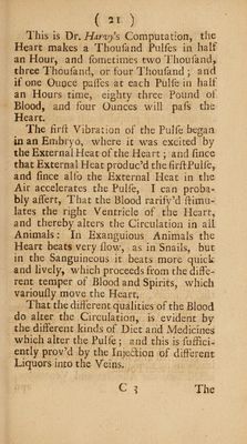Credit: The physician's pulse-watch; or, an essay to explain the old art of feeling the pulse, and to improve it by the help of a pulse-watch ... To which is added, an extract out of Andrew Cleyer, concerning the Chinese art of feeling the pulse. (An appendic. I. An essay to make a new sphygmologia ... II. An inquiry into the nature ... of the respirations ... III. A letter concerning the rupture in the lungs) / [Sir John Floyer]. Source: Wellcome Collection.