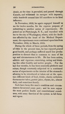 Experiments and observations on the gastric juice, and the physiology of digestion / by William Beaumont ; Facsim. of the original ed. of 1833 together with a biographical essay A pioneer American physiologist, by Sir William Osler.