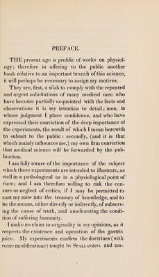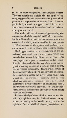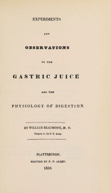 Experiments and observations on the gastric juice, and the physiology of digestion / by William Beaumont ; Facsim. of the original ed. of 1833 together with a biographical essay A pioneer American physiologist, by Sir William Osler.