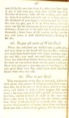 Credit: English housewifery : exemplified in above four hundred and fifty receipts, giving directions in most parts of cookery ... / by Elizabeth Moxon. With an appendix containing upwards of eighty receipts ... communicated to the publisher by several gentle women in the neighbourhood .... To this edition is now added an introduction giving an account of the times when river fish are in season; and a table shewing at one view the proper seasons for sea fish. Source: Wellcome Collection.