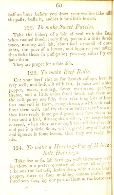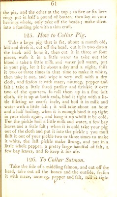 Credit: English housewifery : exemplified in above four hundred and fifty receipts, giving directions in most parts of cookery ... / by Elizabeth Moxon. With an appendix containing upwards of eighty receipts ... communicated to the publisher by several gentle women in the neighbourhood .... To this edition is now added an introduction giving an account of the times when river fish are in season; and a table shewing at one view the proper seasons for sea fish. Source: Wellcome Collection.