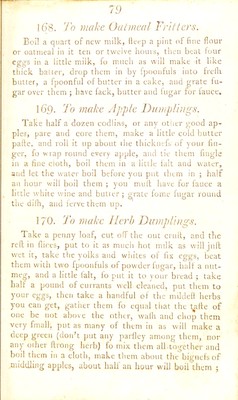 English housewifery : exemplified in above four hundred and fifty receipts, giving directions in most parts of cookery ... / by Elizabeth Moxon. With an appendix containing upwards of eighty receipts ... communicated to the publisher by several gentle women in the neighbourhood .... To this edition is now added an introduction giving an account of the times when river fish are in season; and a table shewing at one view the proper seasons for sea fish.