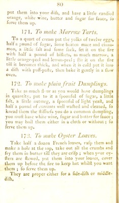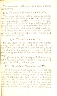 Credit: English housewifery : exemplified in above four hundred and fifty receipts, giving directions in most parts of cookery ... / by Elizabeth Moxon. With an appendix containing upwards of eighty receipts ... communicated to the publisher by several gentle women in the neighbourhood .... To this edition is now added an introduction giving an account of the times when river fish are in season; and a table shewing at one view the proper seasons for sea fish. Source: Wellcome Collection.