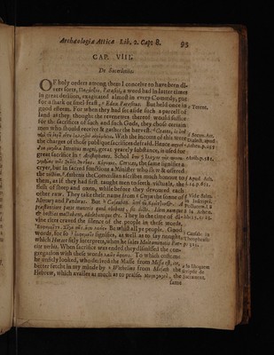 Credit: Archæologiæ Atticæ libri septem. Seven books of the Attick antiqvities. Containing the description of the citties glory, government, division of the people, and towns within the Athenian territories. their religion, superstition, sacrifices. account of the year, a full relation of their judicatories / By Francis Rovs ... With an addition of their customs in marriages, burials, feastings, divinations, &c. in the foure last bookes. By Zachary Bogan. Source: Wellcome Collection.
