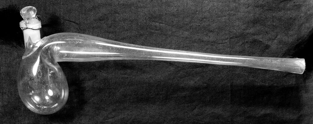 Credit: M0018216: Glass retort with stopper, mid 19th century. Source: Wellcome Collection.