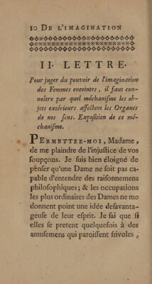 Credit: Lettres sur le pouvoir de l'imagination des femmes enceintes. Où l'on combat le préjugé qui attribue à l'imagination des mères le pouvoir d'imprimer fur le corps des enfans renfermés dans leur fein la figure des objets qui les ont frappees / [Anon]. Source: Wellcome Collection.