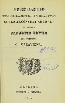 Ragguaglio delle osservazioni ed esperienze fatte sullo Argonauto argo (L.) da Madama Jannette Power / C. Maravigna.