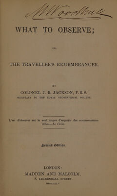 What to observe; or the traveller's remembrancer / By J.R. Jackson.