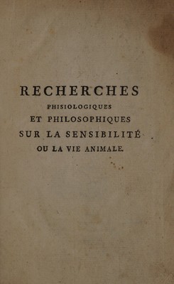 Recherches physiologiques et philosophiques sur la sensibilité, ou la vie animale / Par M. de Seze.