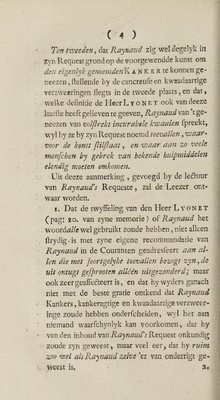Verklaaring der geneezingen in 's Hage gedaan door Jaques [sic] Rainaud, en dienende tot staaving der advertentien ten zynden behoeve in de Haarlemse, Rotterdamse, en Haagse Couranten van November 1778 bekend gemaakt, en tot wederlagging van zeekere contra advertentien daar tegen in dezelfde Courante uitgegeeven / [Pierre Lyonet].