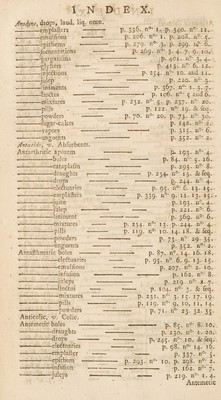 Credit: A complete extemporaneous dispensatory; or, the method of prescribing, compounding, and exhibiting extemporaneous medicines. In which is contained at large, the doctrine of all those various forms, both external and internal, which are now in use. Exemplified with many accurate specimens of each / Translated from the Latin original of the learned H.D. Gaubius ... [by S.M]. Source: Wellcome Collection.
