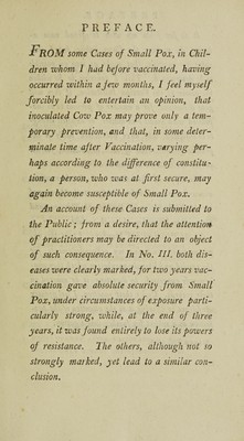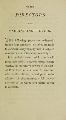 Credit: Cases of small pox, subsequent to vaccination, with facts and observations, read before the Medical Society, at Portsmouth, March 29th 1804; addressed to the directors of the Vaccine Institution / [William Goldson]. Source: Wellcome Collection.