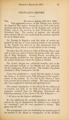Reports of the superintendent and chaplain of Broadmoor Criminal Lunatic Asylum, with statistical tables, for the year 1879.