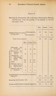 Credit: Reports of the superintendent and chaplain of Broadmoor Criminal Lunatic Asylum, with statistical tables, for the year 1879. Source: Wellcome Collection.