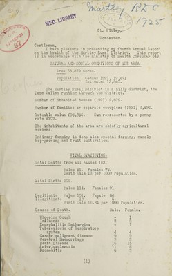 Credit: [Report 1925] / Medical Officer of Health, Martley R.D.C. Source: Wellcome Collection.