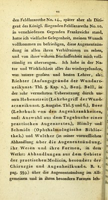 Die Augenentzündung unter den Truppen in den Kriegesjahren 1813 bis 1815, oder die Ophthalmia catarrhalis bellica nosologisch-therapeutisch abgehandelt / von Theodor Friedrich Baltz.