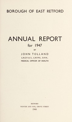 Credit: [Report 1947] / Medical Officer of Health, East Retford U.D.C. / Borough. Source: Wellcome Collection.