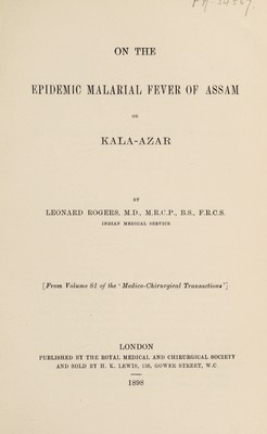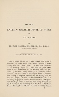On the epidemic malarial fever of Assam or kala-azar / by Leonard Rogers.