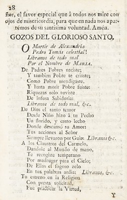 Credit: Quinario, que para implorar el amparo del portentoso virgen, doctor y martir carmelita San Pedro Tomas ... : especialisimo abogado contra todo genero de peste, epidemia, ô enfermedad contagiosa ... / por un sacerdote de la ciudad de México. Source: Wellcome Collection.