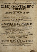 Dissertatio inauguralis chemico-medica de oleis essentialibus aethereis eorumque operandi modo et usu. Public Domain Mark. Source: Wellcome Collection.