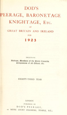 Dod's peerage, baronetage and knightage, etc. of Great Britain and Ireland for 1923 : including bishops, members of the Privy Councils, companions of all orders, etc.
