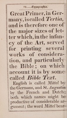 Credit: Typographia: or the printers' instructor, including an account of the origin of printing. With biographical notices of the printers of England, from Caxton to the close of the sixteenth century: a series of ancient and modern alphabets, and Domesday characters: together with an elucidation of every subject connected with the art / By J. Johnson, printer. Source: Wellcome Collection.