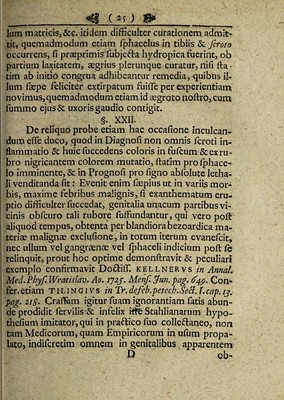 Credit: Dissertatio inauguralis medica chirurgica, sistens casum de sphacelo scroti observato et curato / [Johann Friedrich Fritsch]. Source: Wellcome Collection.