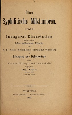 Credit: Über syphilitische Milztumoren ... / vorgelegt von Paul Wölfert. Source: Wellcome Collection.