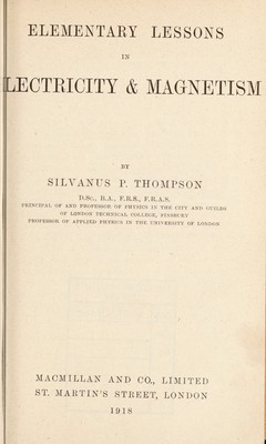 Elementary lessons in electricity and magnetism / by Silvanus P. Thompson.