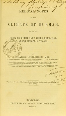 Medical notes on the climate of Burmah : and on the diseases which have there prevailed among European troops / by Charles Murchison.