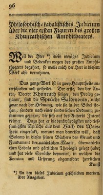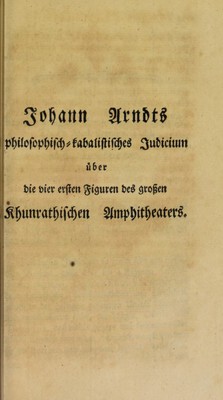 De Igne Magorum Philosophorumque secreto externo et visibili, das ist, philosophische Erklärung des geheimen, äusserlichen sichtbaren Glut- und Flammenfeuers der uralten Weisen ... Nebst J. Arndts philosophisch-kabalistischen Judicio über die vier ersten Figuren des grossen Khunrathischen Amphitheaters / [Heinrich Khunrath].