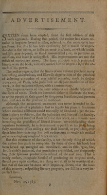 Credit: Domestic medicine: or, A treatise on the prevention and cure of diseases, by regimen and simple medicines: with an appendix, containing a dispensatory for the use of private practitioners / By William Buchan ... Adapted to the climate and diseases of America, by Isaac Cathrall. Source: Wellcome Collection.