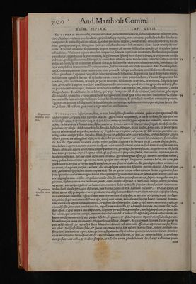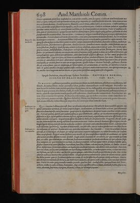 Petri Andreae Matthioli medici Senensis Commentarii, in libros sex Pedacii Dioscoridis Anazarbei, de medica materia. Adiectis quàm plurimis plantarum & animalium imaginibus, eodem authore. Cum Pont. maximi, cæsareæ maiestatis, christianiss. galliarum regis, ac illustriss. Senatus Veneti, gratia & priuilegio.