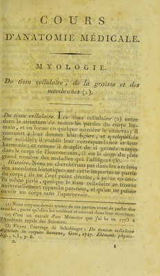 Cours d'anatomie médicale, ou, Élémens de l'anatomie de l'homme : avec des remarques phsyiologiques et pathologiques, et les résultats de l'observation sur le siége et la nature des maladies, d'après l'ouverture des corps / par Antoine Portal.