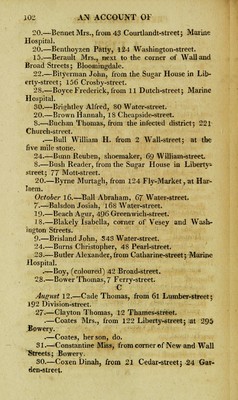 An account of the yellow fever...in the city of New York, in the year 1822 : to which is prefixed a brief sketch of the different pestilential diseases, with which this city was afflicted, in the years 1798, 1799, 1803 & 1805, with the opinion of several of our most eminent physicians, respecting the origin of the disease, its prevention and cure...list of...deaths by yellow fever... / taken from official documents.