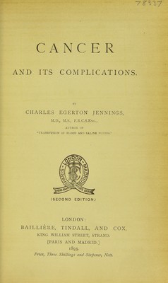 Credit: Cancer and its complications / by Charles Egerton Jennings. Source: Wellcome Collection.