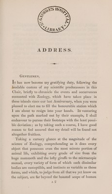 Credit: An address delivered at the anniversary meeting of the Zoological Club of the Linnean Society / [Joshua Brookes]. Source: Wellcome Collection.