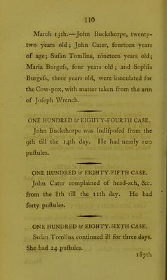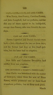 Credit: Reports of a series of inoculations for the variolae vaccinae, or cow-pox : with remarks and observations on this disease, considered as a substitute for the small-pox / by William Woodville. Source: Wellcome Collection.