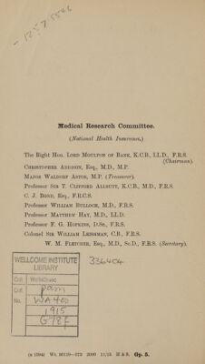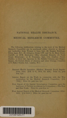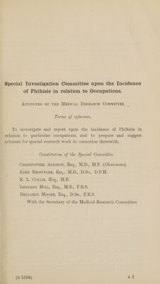 - Great Britain. Medical Research Committee. Investigation Committee upon the Incidence of Phthisis in Relation to Occurence.