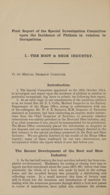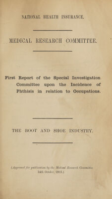 First report of the Special Investigation Committee upon the Incidence of Phthisis in Relation to Occupations : the boot and shoe industry.
