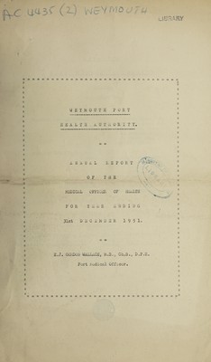 Credit: [Report 1951] / Medical Officer of Health, Weymouth Port Health Authority. Source: Wellcome Collection.