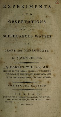 Experiments and observations on the sulphureous waters at Croft and Harrowgate in Yorkshire / [Robert Willan].