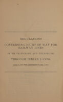 Regulations concerning right of way for railway lines (with telegraph and telephone) through Indian lands (April 18, 1899, with amendments of April 8, 1901) / [Dept. of the Interior]. Public Domain Mark. Source: Wellcome Collection.