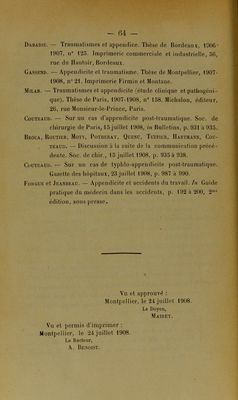 Credit: Appendicite & traumatismes (étude pathogéniquet et médico-légale) : thèse présentée et publiquement soutenue à la Faculté de médecine de Montpellier le 30 juillet 1908 / par Elisabeth Waïntraoub. Source: Wellcome Collection.
