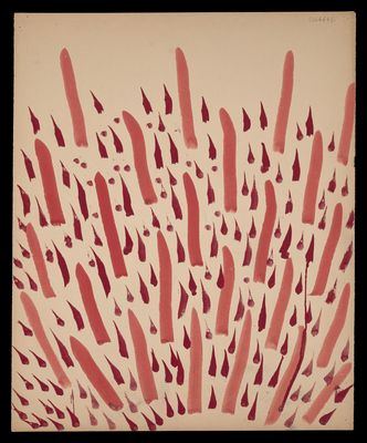 Credit: Red diagonal lines, droplets and a snowflake shape. Source: Wellcome Collection.